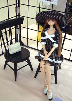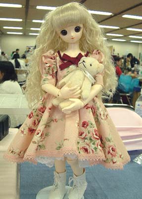 | いなぴさんちのリフィーちゃん。 テーブルに華を添えてくれました。 ドレス・くま共に展示のみでした。 |