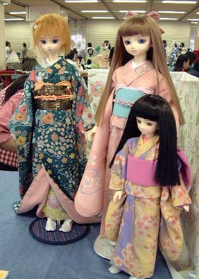 こちらは「道楽企画」スペース。 いつもながら、着物が艶やかです。 左から蘭芳(ランファン)ちゃん、美虎(メイフー)ちゃん そして白黒茶(みけ)ちゃん。 蘭芳ちゃんはそばかすっこなのです。 |