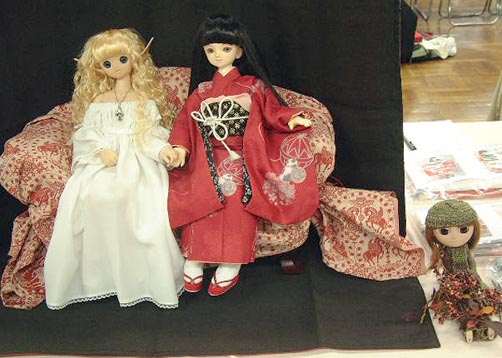 | 右:Mi BRAND新作 くまちゃんトート 左:おはりこ カジュアルセット 今回はとにかく慌しくて、モデルさんも裏展示もなんにもナシでした。 そこまで頭が回らなくて。(^^;) いやもう殺風景でした。 う〜ん・・・これではイカンですね。 次回リベンジ。 会場で「アンジェは?」「兄弟いないの?」とのお声を頂き。 弟は妹になってたし、兄は機械鎧修理のためバラバラでして、とても展示できない状態だったのでした。 え、妹でも良かったですか・・・ 後日、ピンクの水玉ドレスのコレットちゃん連れて行っても良かったんだと後悔しきり。きいい。 下 左:いなぴさんちのニューフェイス フルチョ姫 中央:サミュエルさんちの白黒茶ちゃん 左:サミュエルさんちのUNA |