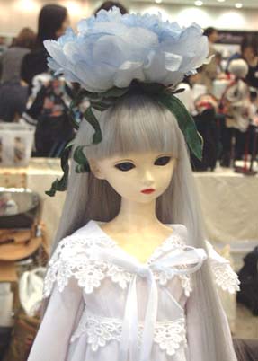 | 今回の目玉展示はコレ! 「観用少女」の月華です。 いつものように「Mi BRAND」のシゼルちゃんに モデルになってもらいました。 ドレスはおはりこ製ですが 長いウィッグはいなぴさんのお手製です! 人間用のウィッグ素材を使ってあって、 手触りが縦なめ横サラなのです。 |