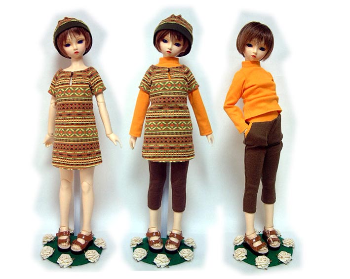 チュニックの胸元の木のビーズと、切り替えスパッツがお気に入りです。